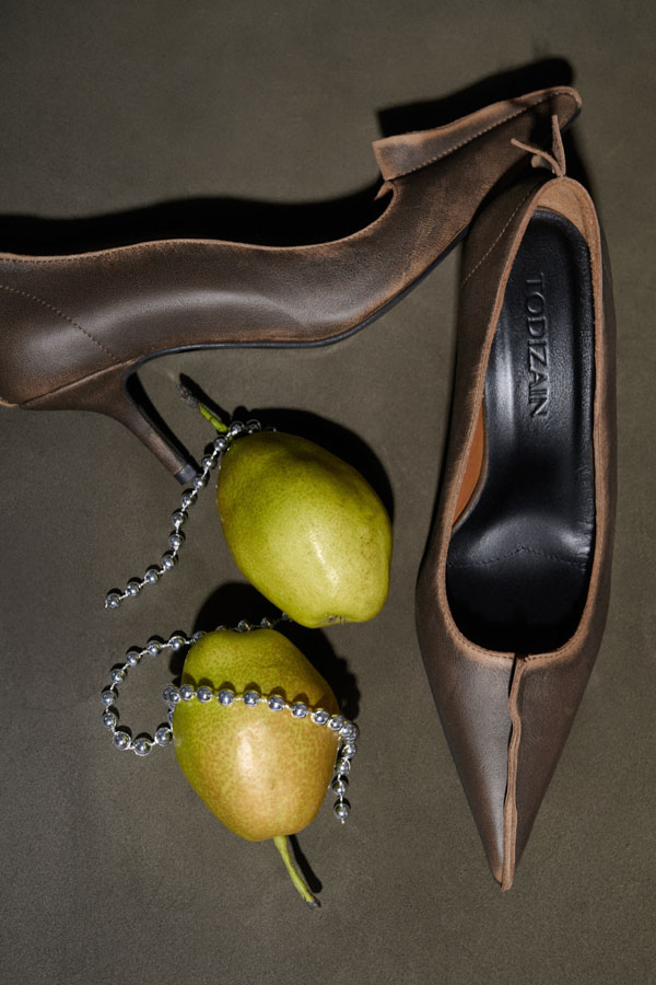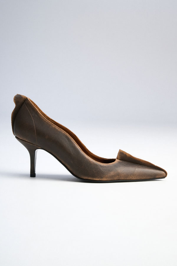 ТУФЛИ ИЗ ВИНТАЖНОЙ КОЖИ БЕЗ БАНТА, ЦВЕТ КОРИЧНЕВО-РЫЖИЙ, КАБЛУК 7 СМ