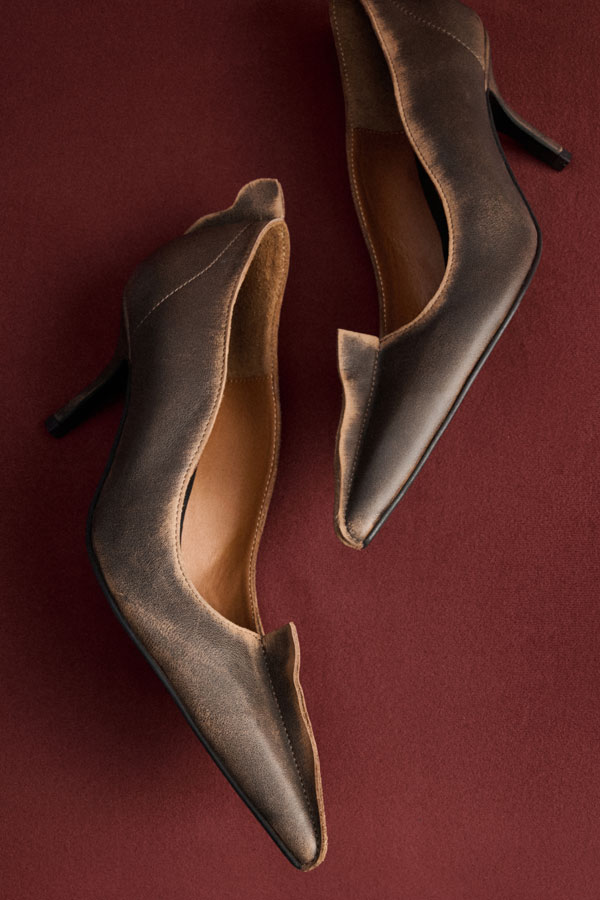 ТУФЛИ ИЗ ВИНТАЖНОЙ КОЖИ БЕЗ БАНТА, ЦВЕТ КОРИЧНЕВО-РЫЖИЙ, КАБЛУК 7 СМ.